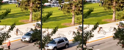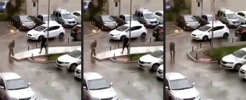 Der erste Treffer hat schon gesessen. Dem Laternenpfahl sei Dank wurde ein zweiter verhindert. Dieser hätte dann vermutlich franzö...