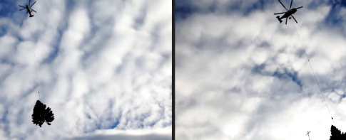 In St. Gallen kommt die alljährliche Weihnachtsstimmung per Luftpost, weil man so keinen Kranplatz verdichten muss.