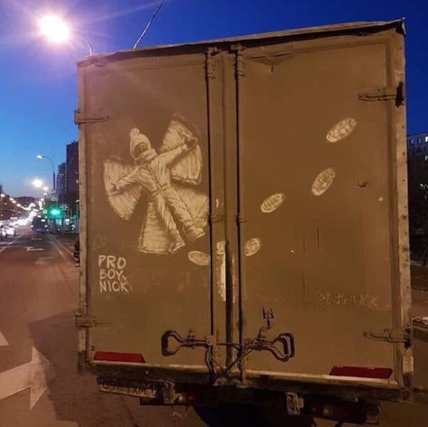 Was mich da viel mehr verwirrt sind die drei identischen Frauen die im Hintergrund den Gehsteig entlang gehen...