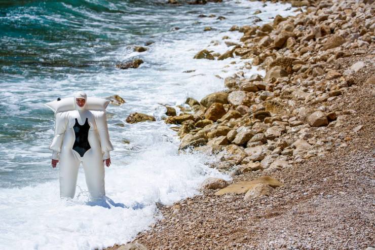 26: Nach dem Auftragen des Bräunungssprays ist das Oberteil leider verrutscht.