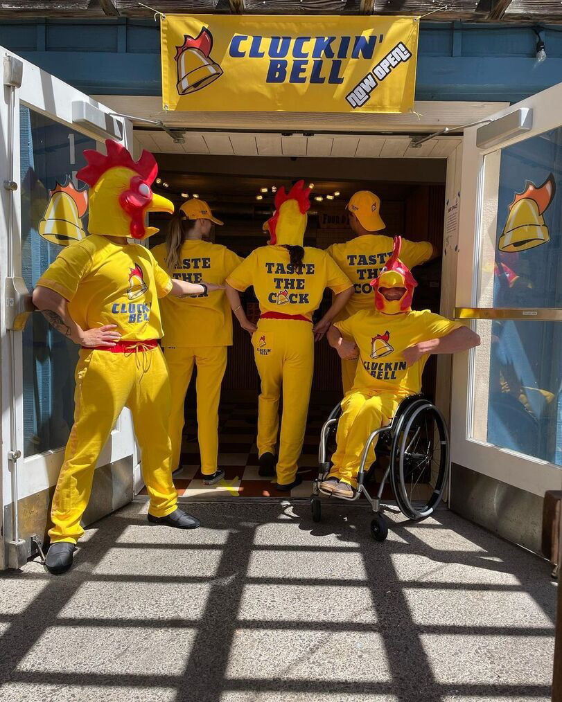 #118: Grand Theft Auto (oft abgekürzt als GTA, dt. etwa „Schwerer Autodiebstahl“) ist eine Videospielserie des US-amerikanischen Publishers Rockstar Games. Ein Teil seines Erfolgs beruhte darauf, wie es Amerika verspottete: es machte sich über Politik, Promis, Social Media und Konsum lustig. Es gibt auch Parodien unzähliger realer Marken, von denen eine ein Fast-Food-Joint namens „Cluckin Bell“ ( GTA SA Cluckin' Bell TV Commercial - YouTube ) ist, das KFC nachzuahmen scheint, was im Spiel selbst so aussah: Grand Theft Auto: San Andreas. Eating Too Much Cluckin Bell - YouTube . Zum Start der Comic-Con 2022 in San Diego eröffnete eine reale Version des Restaurants