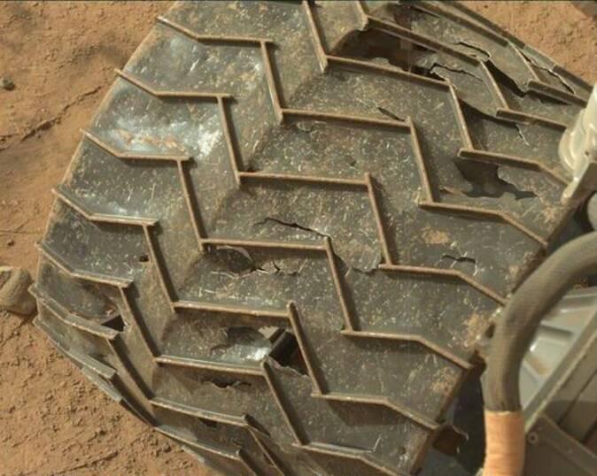 #88 ist ein rad des Mars rover curiosity, das marsgestein und so ist so scharf dass die räder aus metall einfach zerschnitten werden mit der zeit