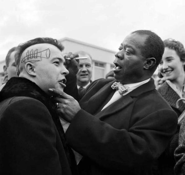#5 Louis Armstrong in France, drawing on a punk's forehead (1961) (via Reddit)