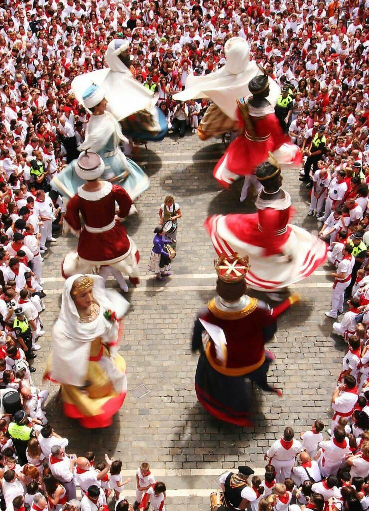 #10 Gigantes y Cabezudos (‚Riesen und Großköpfe‘) sind populäre Figuren der spanischen Volkstradition. Sie haben vielerorts einen festen Platz bei innerstädtischen Festumzügen, wie hier beim San Fermin in Pamplona, Spanien. Gigantes de Pamplona bailando al son de La Pamplonesa. Iruñeko Erraldoiak. San Saturnino 2017. - YouTube