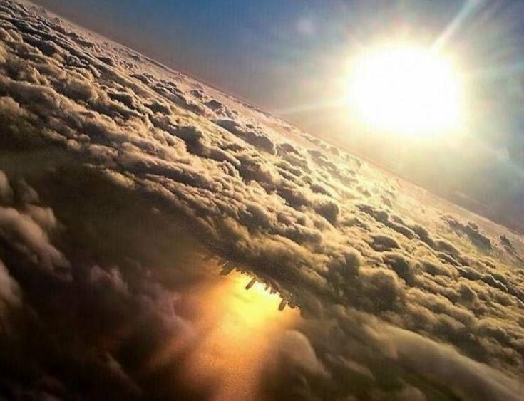 #91 Die Stadt Chicago, doch die langen Schatten, die Chicago bei Sonnenuntergang auf den nahen Michigansee warf, sind als Reflexion zu sehen und ließen die Gebäude scheinbar kopfstehen.Dieses faszinierende, rätselhafte, aber wunderschöne Bild wurde 2014 von einem Fotografen in einem Flugzeug beim Landeanflug an den O’Hare International Airport in Chicago fotografiert.