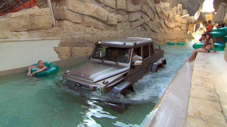 #74 VIDEO Top Gear host takes Mercedes G63 6x6 test drive at UAE's Yas Waterworld - YouTube