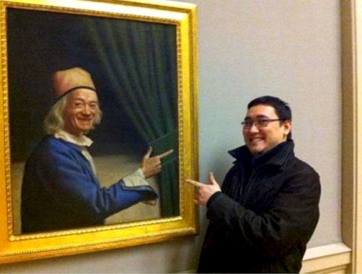 und ist gephotoshopped! Sieht man an seinem Hemd und der Hand
