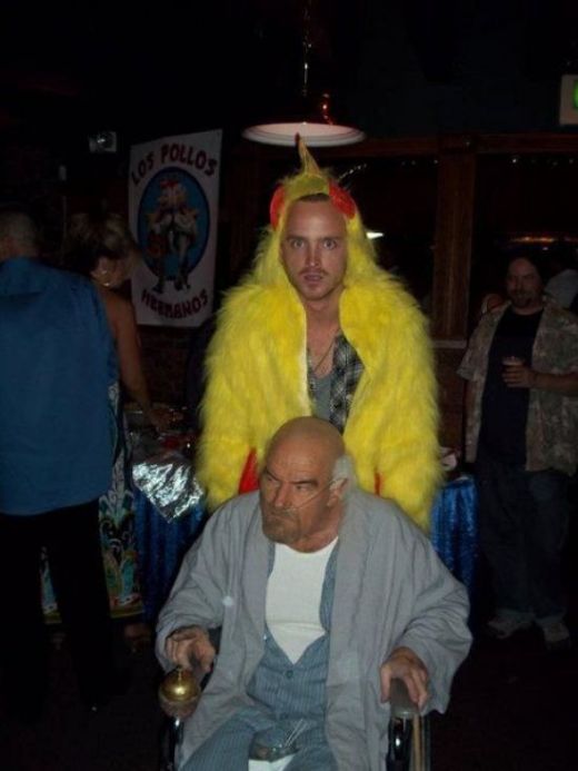 Geil das Foto in dem Hühnchen Kostüm udn dem alten mann im rollstuhl, is aus Breaking Bad eine verdammt geile Serie kann sie euch allen nur empfhelen!