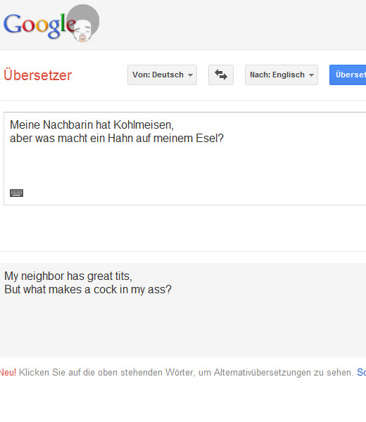 haha hab das mit dem google übersetzer ausprobiert =D funktioniert wirklich