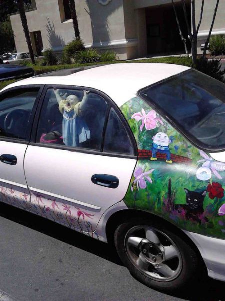 Spinne hinter der Sonnenblende