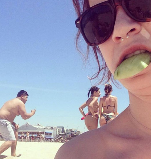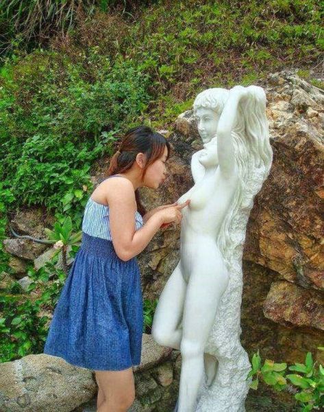 Offensichtlich photographiert der Alte den Schritt der Ollen.