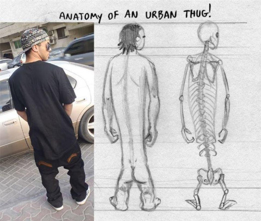 es geht wohl darum, dass man auf den ersten blick getäuscht werden kann, wem jetzt welches paar beine gehört (ich für meinen teil auch bei späterem betrachten des bildes immernoch ^^)
