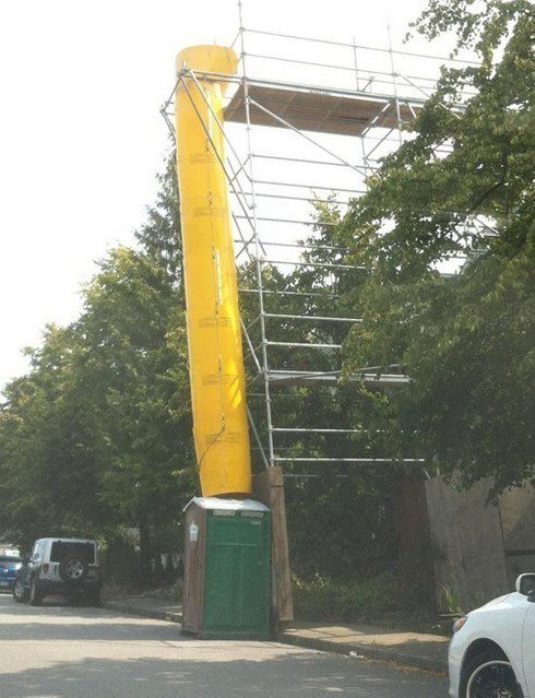 Sogar das Rohr an der Wand geht plötzlich steil hoch. Man, wasn Arsch.