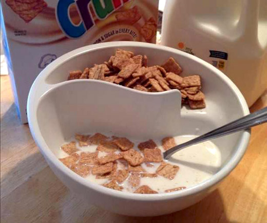 Außerdem behebt diese Bauweise eines der größten Probleme in der Geschichte des Frühstückens: Jeder kennt das Problem, das erst die Müsliflocken alle sind und noch Milch über ist. Bei dieser Schüssel kann man immer nachlegen, bis die Milch alle ist!