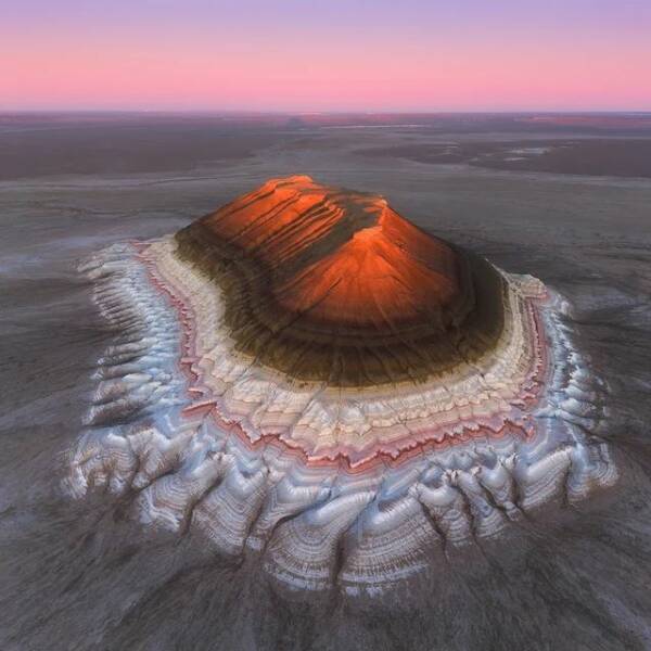 #19 Gora Bokty (Mount Bokty) in Kasachstan, der ist in einer Wüste und entstanden durch die Sedimente eines ausgetrockneten Ozeans Google Maps Kyzylkup Tract (Tiramisu), Mangystau