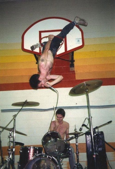 das bild mit der rockband und dem sänger der auf dem basketballkorb ist fugazi