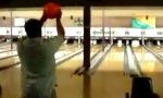 This guy seems to suffer from an extreme squint. Nice though, his buddies take him out for bowling anyway.