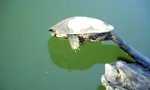 If the turtle was stuck to the branch as it was put off it, then there is no wonder how that scene came to video.