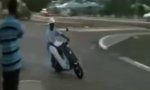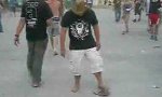 With the nailed flip flops he would have had more luck. So he is rather looking like this T-shirt pro