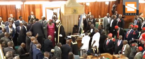 Bilder, wie man sie eigentlich nur aus Italien, der Ukraine und der Türkei kennt. Im ugandischen Parlament kam es zu einer Massens...