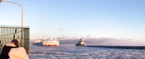 Wenn sich ein Eisberg aus Stahl in den kalten Hafen von Duluth in Minnesota schiebt.
