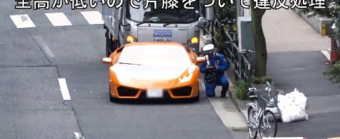 Ein Streifenpolizist auf einem alten Stadtfahrrad samt Einkaufskörbchen, ein Lambo Fahrer der mit nach einem klingeln brav links r...