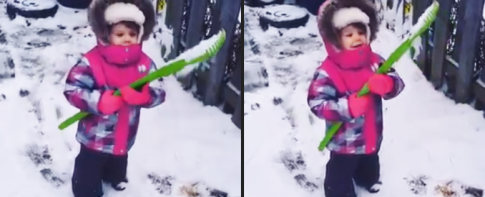 Eine kleine Lehrstunde fürs Enkelkind in Sachen Schneekunde und Gravitation.