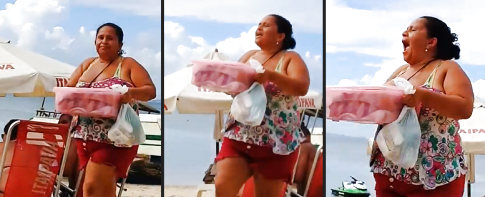 Am Strand von Ribeira kriegt man schon aus einiger Entfernung mit, dass die Bohnenverkäuferin wieder umgeht.
