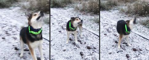 Ein Hund begegnet seinem ersten Schnee...Flockenabwehrsystem aktiviert.