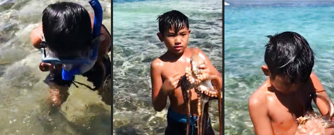 Ist das etwa Bear Grills, der seinem Sohn die harten Lektionen vom Überleben in der Wildnis lehrt?