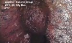 Das sind Tubifexwürmer, die sammeln sich, wenn sie nicht im Wasser sind und haben auf's Licht bzw. auf die Wärme von der Kamera reagiert und ziehen sich deswegen zusammen. Die sollen irgendwie das Kanalsystem reinigen. Sind auch nur ca. 4cm groß solche Würmerkolonien.