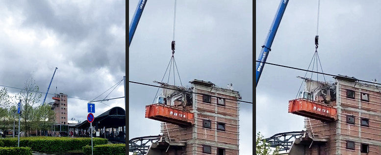Anstatt zu sprengen verdichtete die Baufirma in einen Anflug von Genialität den Kranplatz und gab Zuschauern dann einen kurzen Abriss ihres Improvisationstalents.