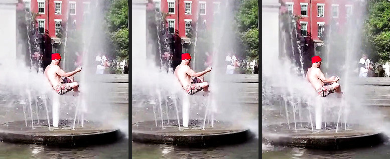 Ich schätze dass der Wasserstrahl den Mann in der Luft hält. Wirklich fliegen quasi schweben wird er nicht können.