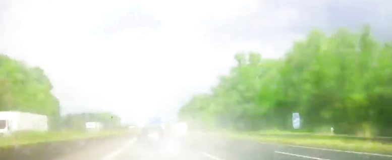 Nicht umsonst steht bei 0:02 80 km/h bei Nässe.