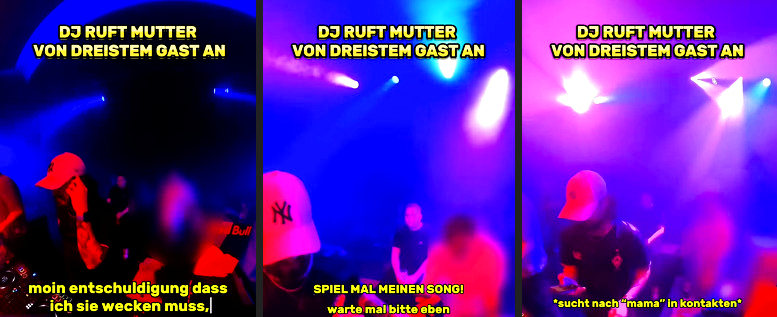 Die beste Mutter der Welt trifft auf ihren schlechtesten Moment im Club. Nach mehrmaliger Ablehnung seines Musikwunsches wechselt ein Gast zum verbalen Tiefschlag - und lernt, dass man mit Prahlerei über mütterliche Abholdienste vorsichtig sein sollte, wenn das eigene Handy in greifbarer Nähe ist.