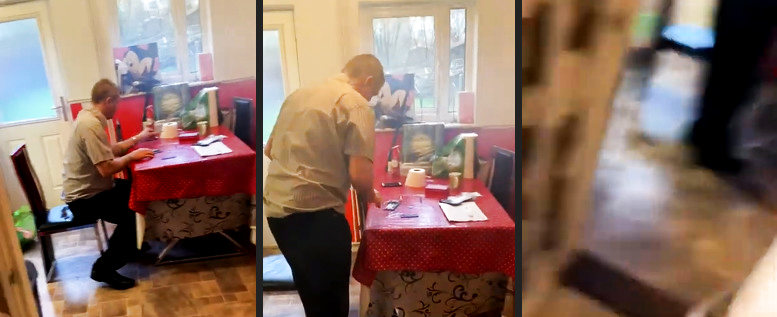 Wassn Volldep. Macht sich echt viel aus seiner blöden Tischdecke. Und die Klorolle auf dem Tisch - alles voll fürn Arsch.