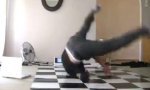 Lektion 1 des Breakdance Lehrvideos durchgegangen und gleich mal sein neu erworbenes Können mit der eingebauten Kamera seines Mac-Books festhalten!