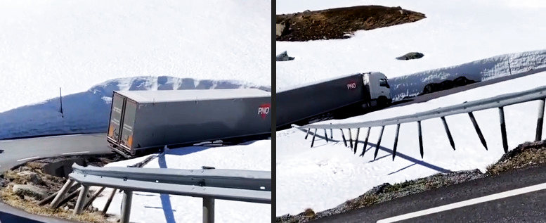 Weil er schon wieder einen Teil seiner Ladung verloren hat muss ihn der Brummi umbedingt wieder auftreiben, damit es nicht wieder Mecker vom Chef gibt.