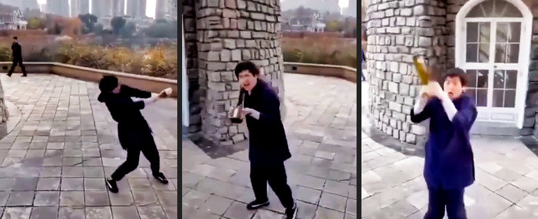 Ob das auch noch genauso aussieht, wenn er die Flasche vorher in einem Zug geleert hat?