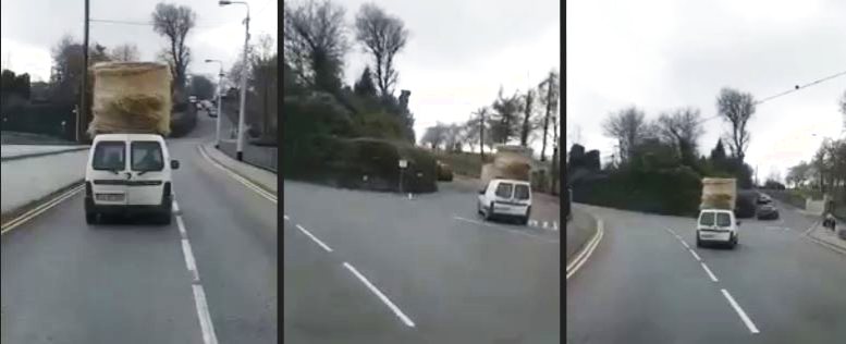 Das Ding passt da gerade so drauf... würde einen nicht wundern, wenn der irische Fahrer nicht nur Stroh auf dem Dach, sondern auch in der Blutbahn hätte.