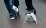 Schade ! Der Tritt trifft die Katze nicht richtig !!! Warum hat der Köter die scheiss Katze nicht gefressen ?