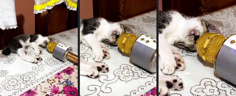 Tonspur ist von deinem Video. Diese Katze atmet viel schneller wenn man die ersten Sekunden auf den Bauch achtet.