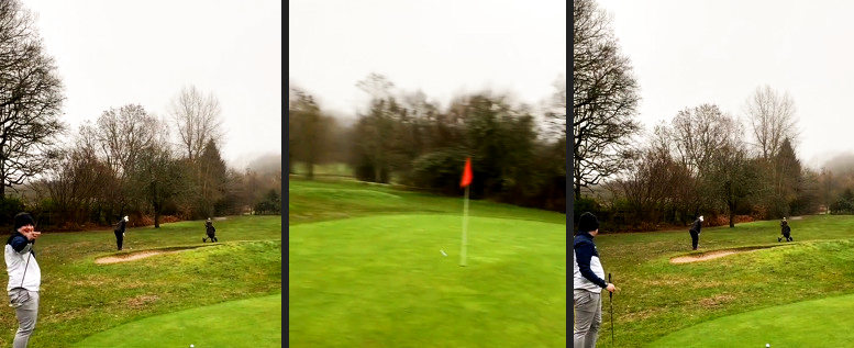 Also Golfschuhe schauen anders aus. Der Schlag selbst schaut gut aus in der Bewegung. Also Anfänger sind sie nicht. Das Quäntchen Glück kennt jeder, der schon einmal am Platz war.