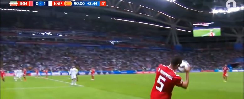 Kurz vor Abpfiff des Spiels Iran - Spanien, hat es dieser Spieler gestern nochmal mit einer in jedem Fall kuriosen Variante eines Einwurfs versucht.