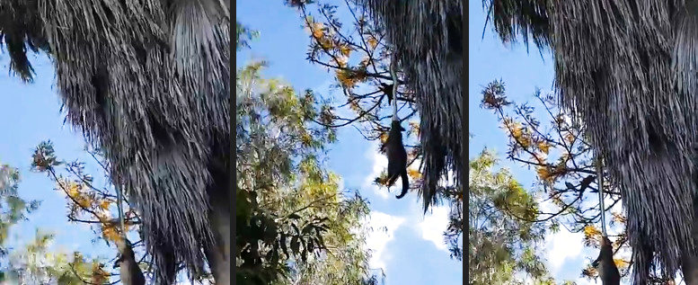 Da hat sie nur nicht zu Ende überlegt, wie sie die Mahlzeit auf einen sicheren Ast bringen soll...