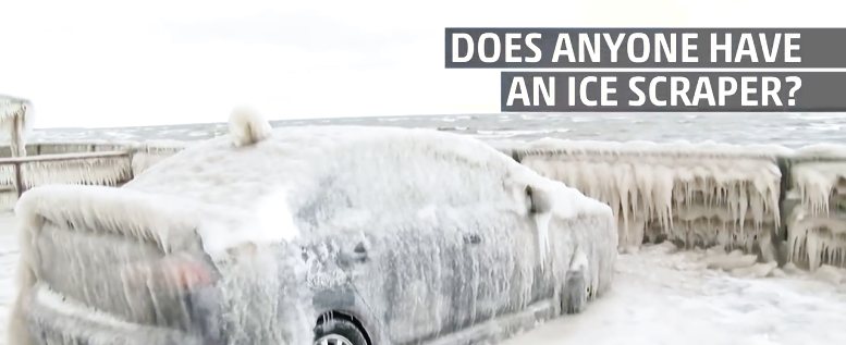 Da hilft auch kein Eiskratzer mehr. Vielleicht sollte man das nächste mal etwas weiter weg vom Meer parken.