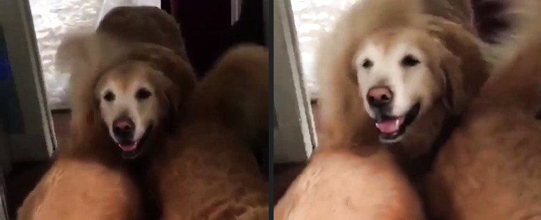 Sieht man auch selten, dass ein Loop mit dem rückwärts gespielten Video beginnt und dann das original einsetzt. Ich kann diese Golden-Zwiebacks nicht ausstehen. So eine blonde Herrchenrasse, die alle Befehle befolgt wie so'n Schaf.